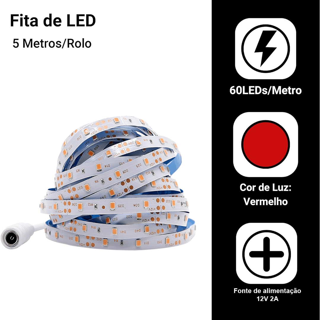Rolo Fita Led com 5 Metros - 60 Leds por Metro / Total de 300 Leds