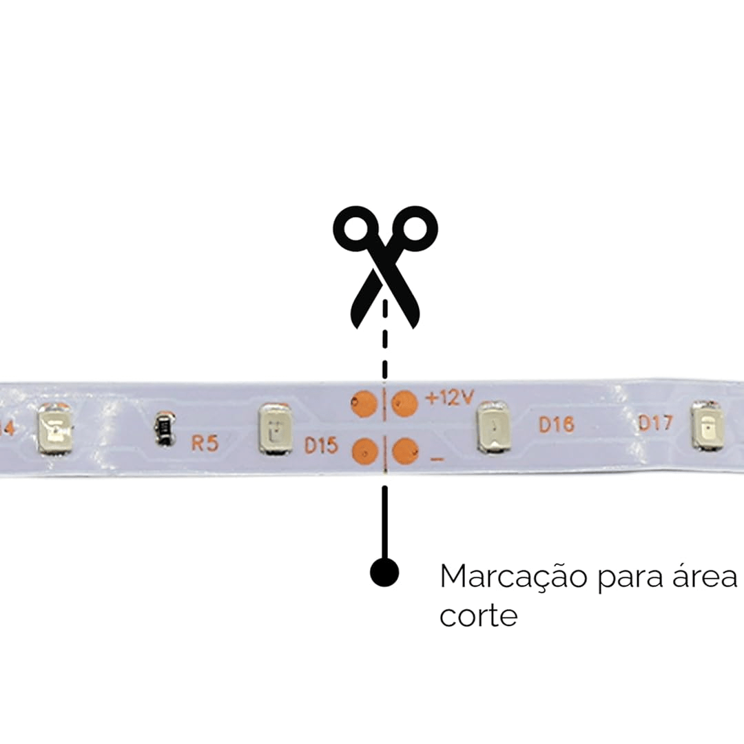 A fita permite o corte em seguimentos facilitando a personalização do projeto, porém com a modificação da fita perderá a garantia. Itens