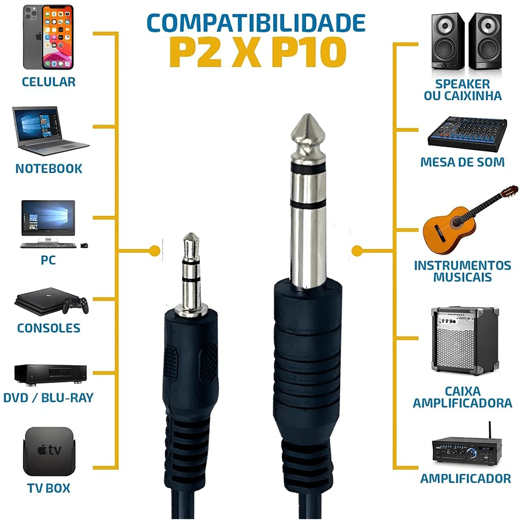 - COMPATIBILIDADE: Cabo de áudio estéreo com conectores P2 (3.5mm) para P10 (6.35mm),