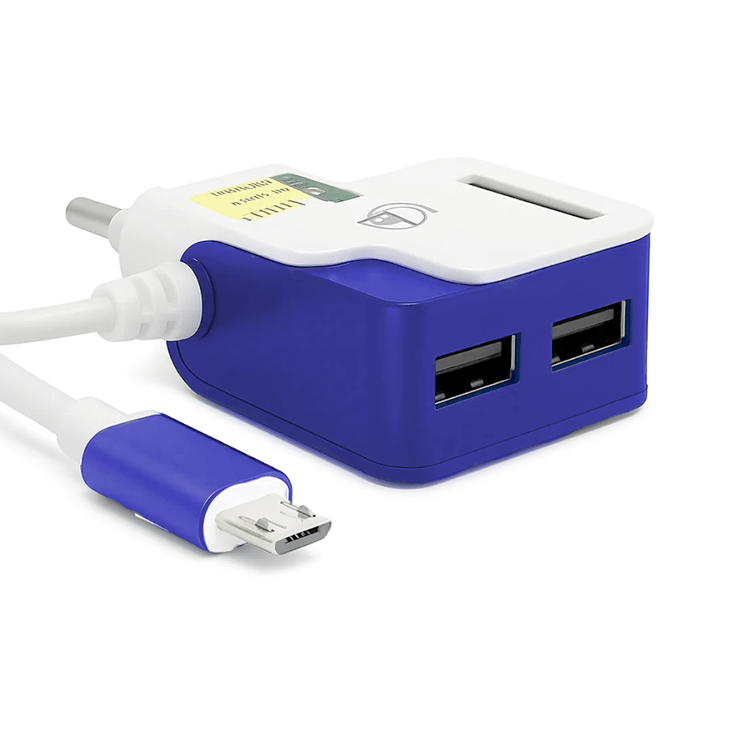 Cada carregador vem com cabo Micro USB embutido, evitando perdas e aumentando a comodidade para o cliente final. Além disso, conta com 2 portas USB extras, que permitem o carregamento de até três dispositivos ao mesmo tempo, mantendo a recarga rápida e estável com potência de 3.1A.