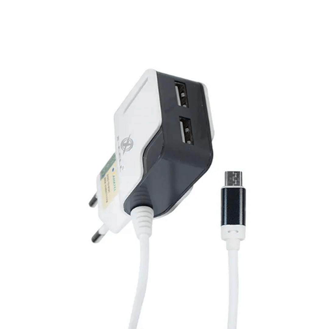 Carregador de tomada bivolt com cabo Micro USB embutido + 2 portas USB.