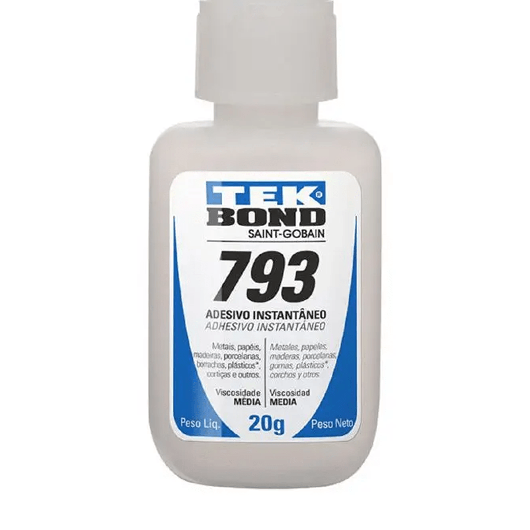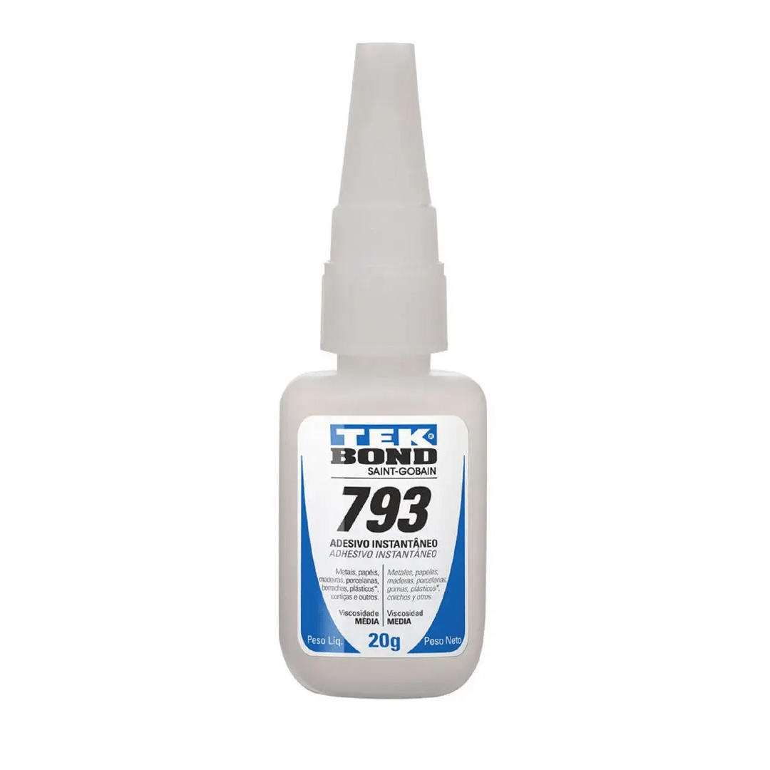 O adesivo TEKBOND - 793 é um adesivo a base de cianoacrilato de média viscosidade desenvolvido para colagens que necessitam de alta velocidade de cura em substratos de difícil adesão principalmente para materiais porosos. Adere diversos tipos de materiais, como compostos de borracha, EPDM, borracha nitrílica, neoprene, EVA e Viton. É um produto monocomponente e não requer mistura. O processo de cura inicia-se quando uma fina camada de adesivo é aplicada entre as superfícies entrando em contato com a umidade do ar atmosférico. É um adesivo multiuso, muito utilizado no setor moveleiro e no setor industrial.