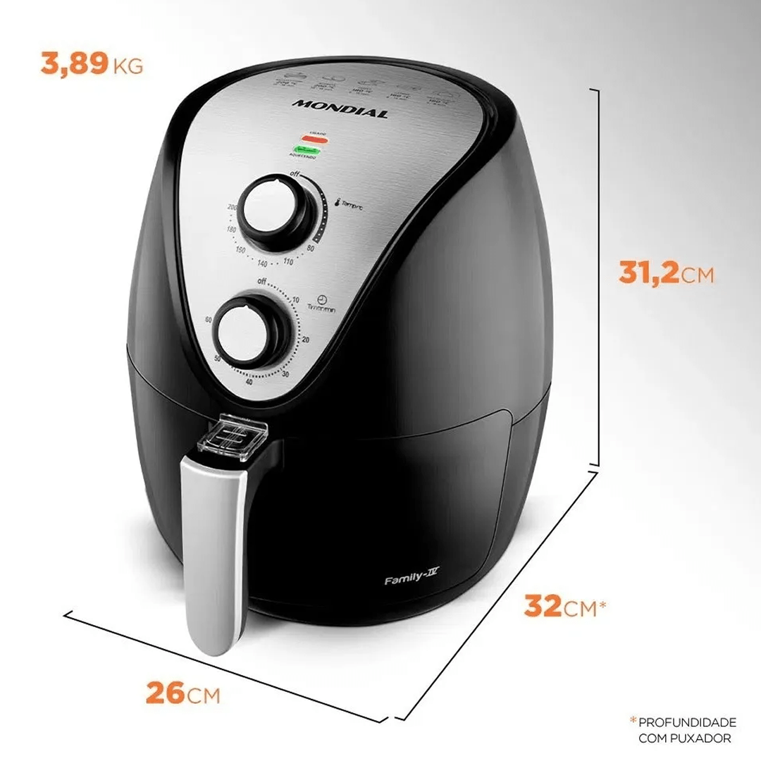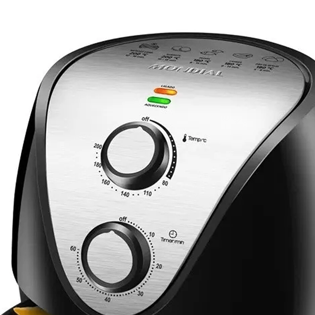 - DESIGN COMPACTO: A Air Fryer Mondial tem um design compacto e ocupa espaço reduzido na bancada da cozinha.