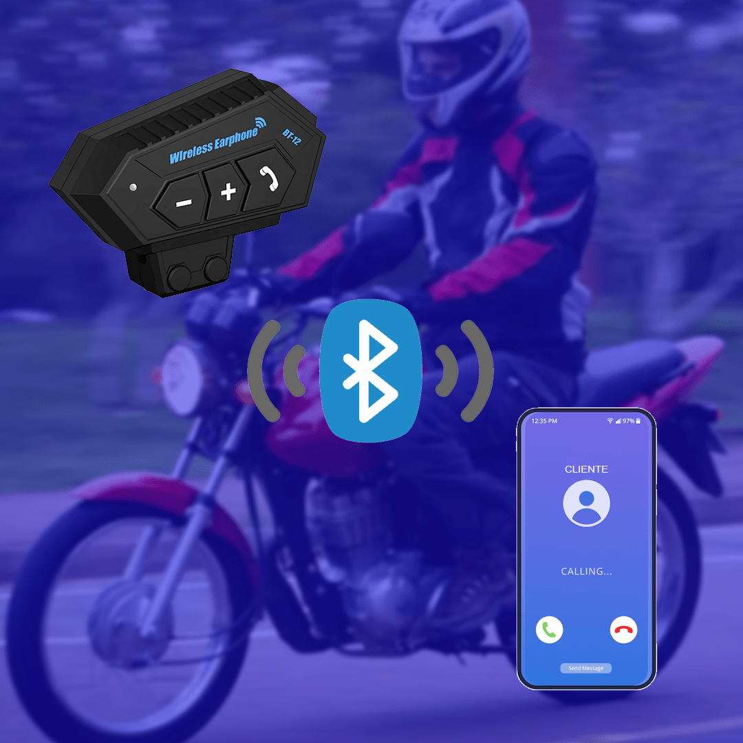 Desfrute de uma pilotagem mais conectada, segura e prática com o Fone de Ouvido para Moto BT12. Desenvolvido para quem vive sobre duas rodas, o BT12 oferece áudio de alta qualidade, design ergonômico e controles por toque, permitindo comunicação eficiente ou música de forma segura, sem tirar os olhos da estrada.