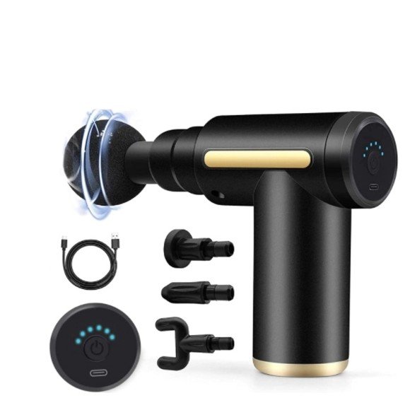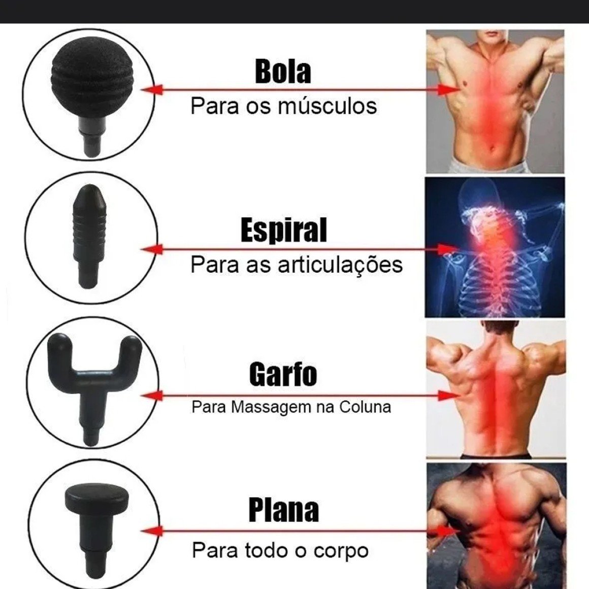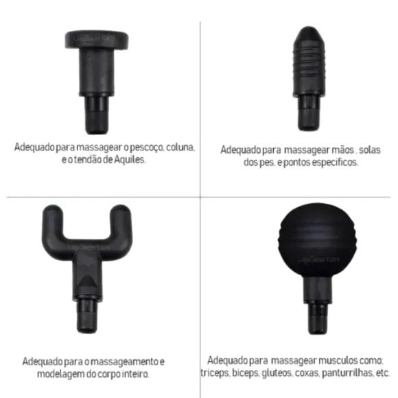 Ele é equipado com quatro formas diferentes de cabeças de massagem, a pistola de massagem tem quatro engrenagens ajustáveis para relaxar seu músculo, um equipamento de fitness perfeito para maximizar o seu efeito de exercício.