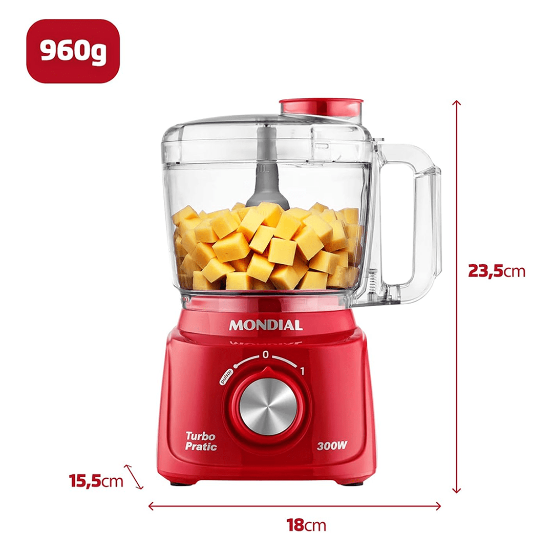 VERSATILIDADE DE RECEITAS: O mini processador Mondial processa, corta, mistura, pica, mói e tritura. Você pode preparar mousses, maionese, moer temperos, triturar queijos e muito mais.