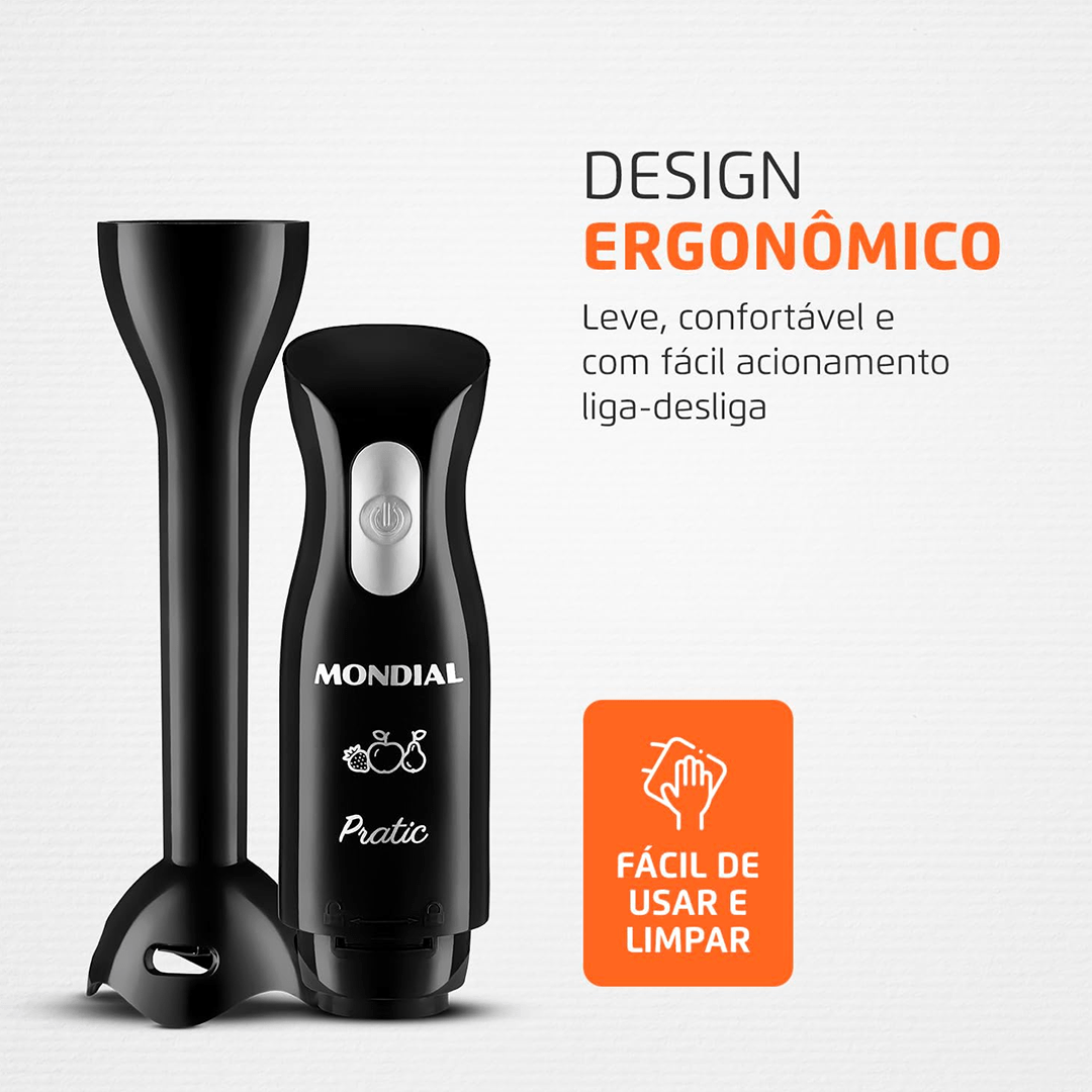 DESIGN MODERNO E ERGONÔMICO: O mixer é leve, de manuseio confortável e fácil acionamento liga-desliga. O resultado? Praticidade na sua rotina na cozinha!