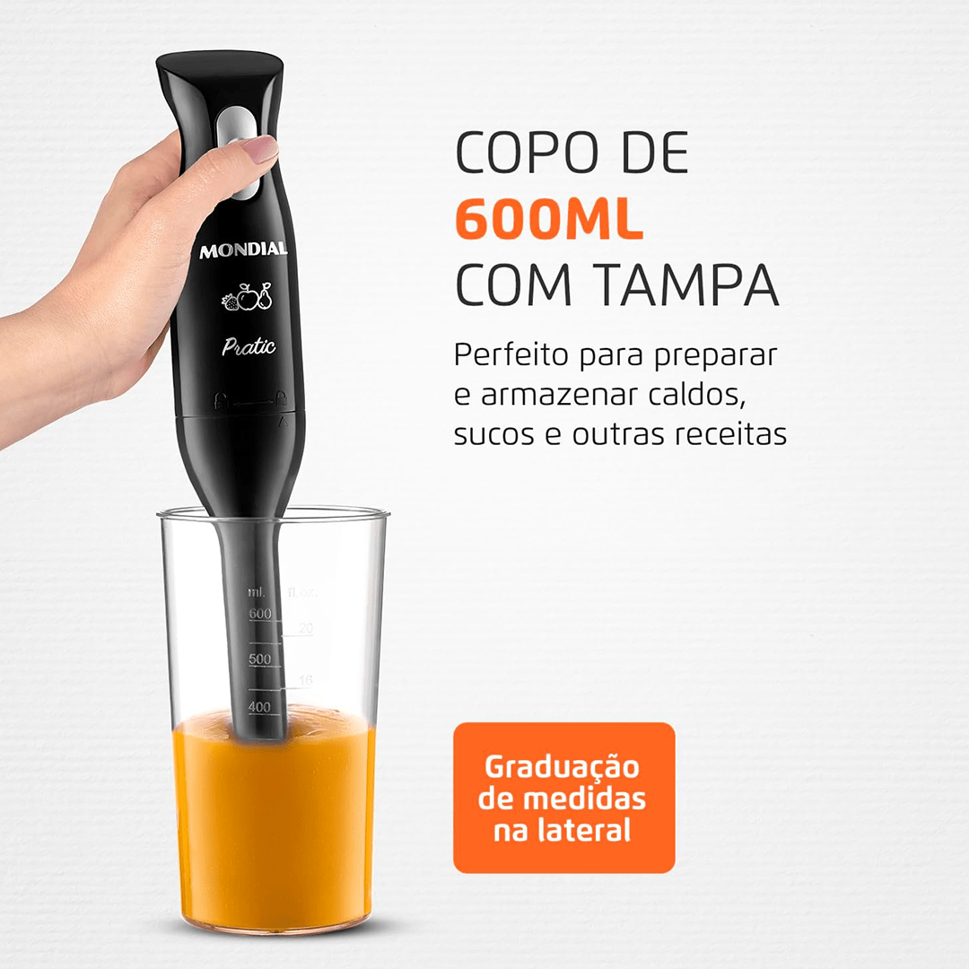 ACOMPANHA COPO DE 600ML COM TAMPA: O copo facilita o preparo e armazenamento de diversos pratos.