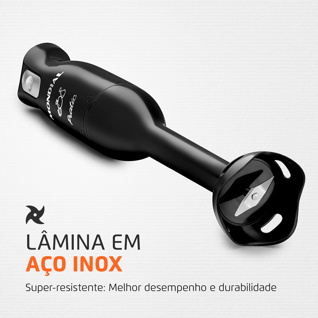 LÂMINA EM AÇO INOX DE MÚLTIPLA AÇÃO: O mixer tritura diversos alimentos simultaneamente, o que proporciona uma textura homogênea e perfeita na preparação de suas receitas. A lâmina em aço também garante melhor desempenho, além de resistência e durabilidade ao seu mixer!