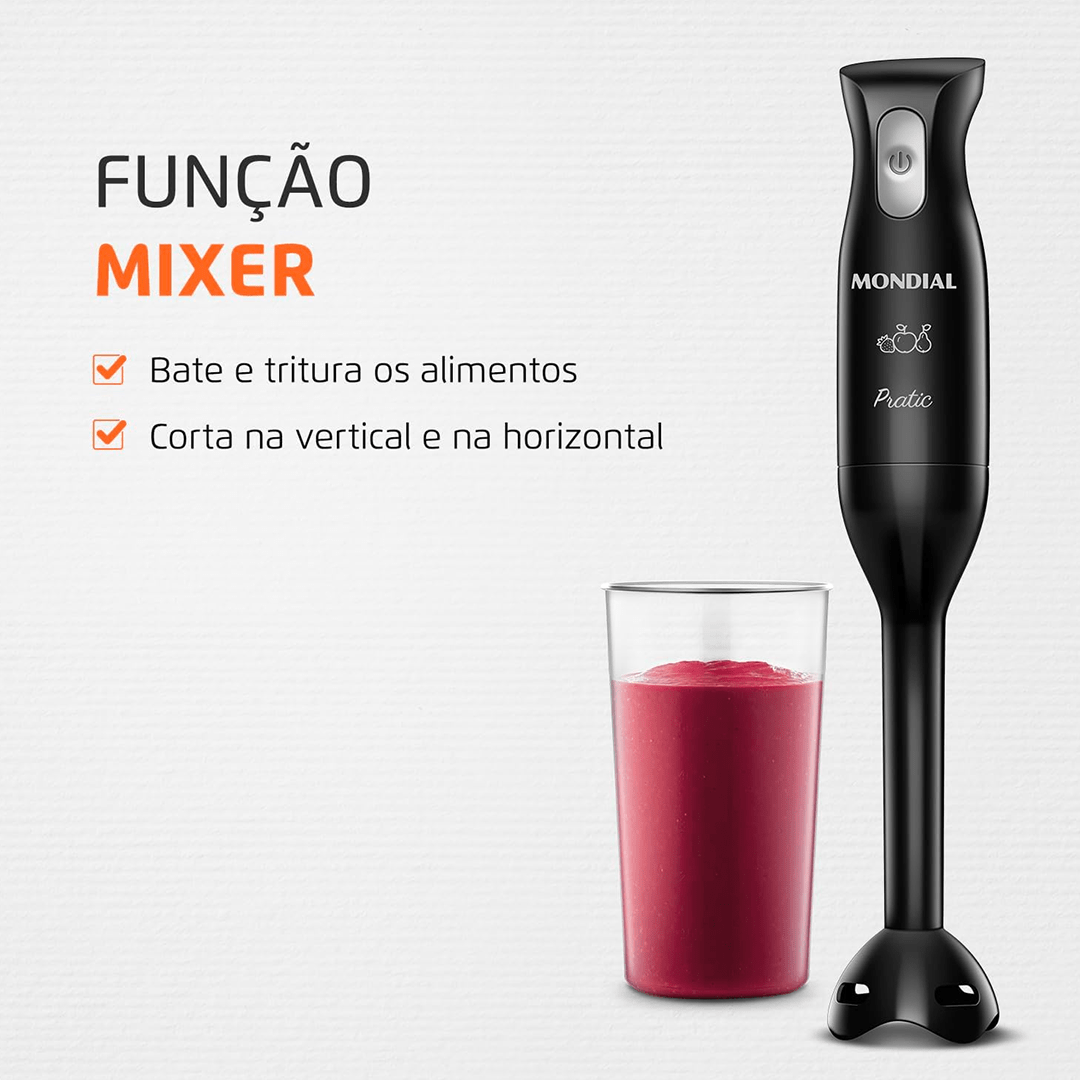 O Mixer M-15 da Mondial é garantia de praticidade no seu dia a dia. O item é o 2 em 1 perfeito para a sua cozinha: ele bate e tritura diversos alimentos simultaneamente e proporciona receitas com uma textura homogênea. É ideal para preparar vitaminas, caldos, sopas, cremes, purês, papinhas de bebê e até desfiar frango. Conheça todos os benefícios do Mixer M-15 da Mondial:
