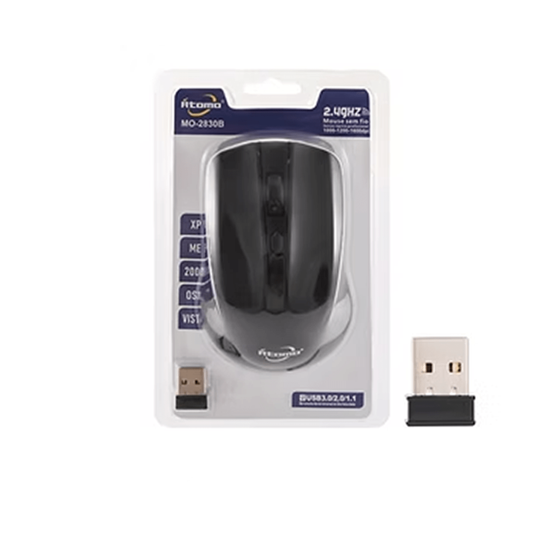 O Mouse Sem Fio USB MO-2821B fornece o necessário para seu conforto e controle confiável de seu computador.