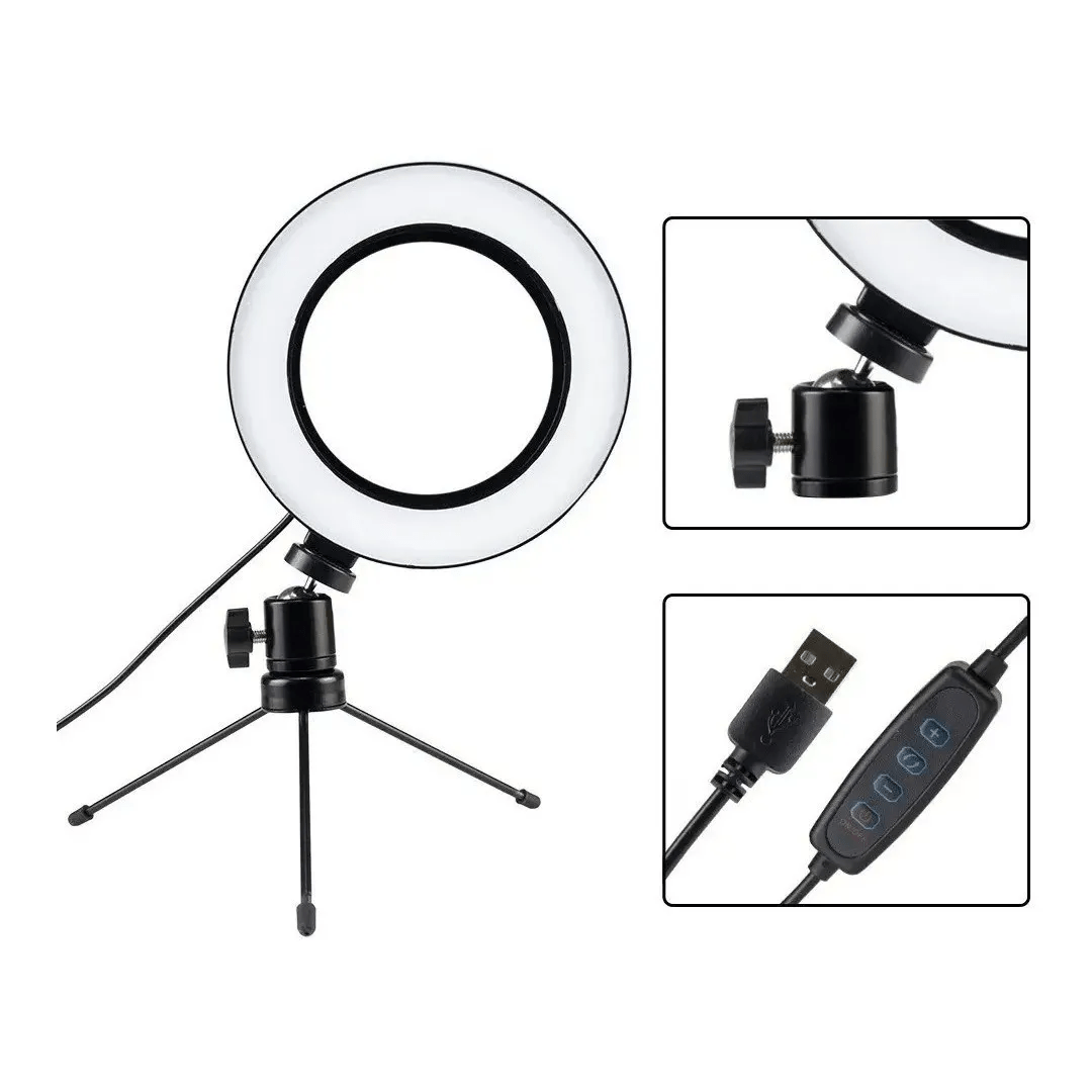 Ring Light De Mesa Iluminador De Led Tripé 6 Polegadas