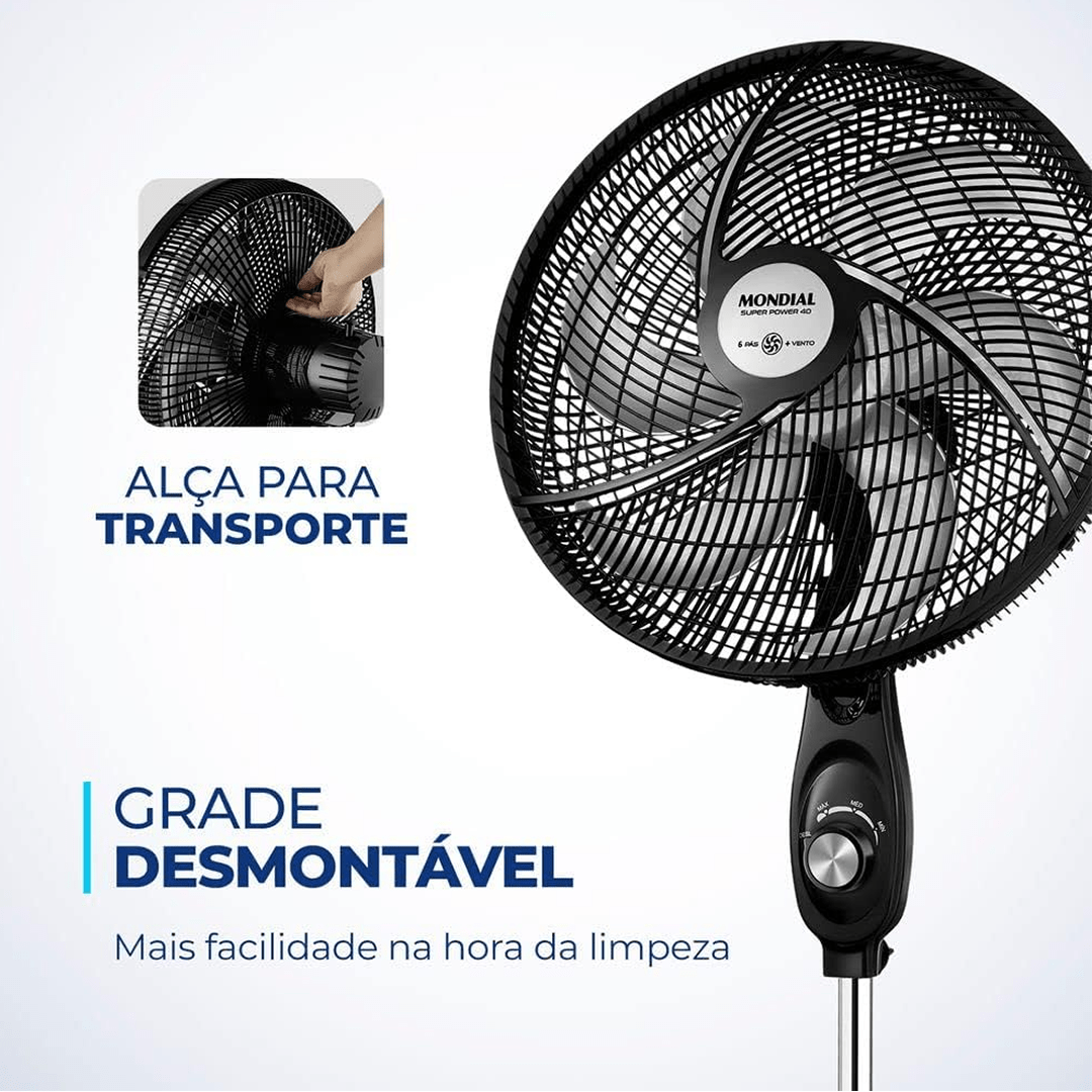 A linha de Ventiladores Super Power possui 40cm de diâmetro e 6 Pás. O design, aliado à potência, promove maior intensidade do vento e é garante um ambiente fresco e agradável.