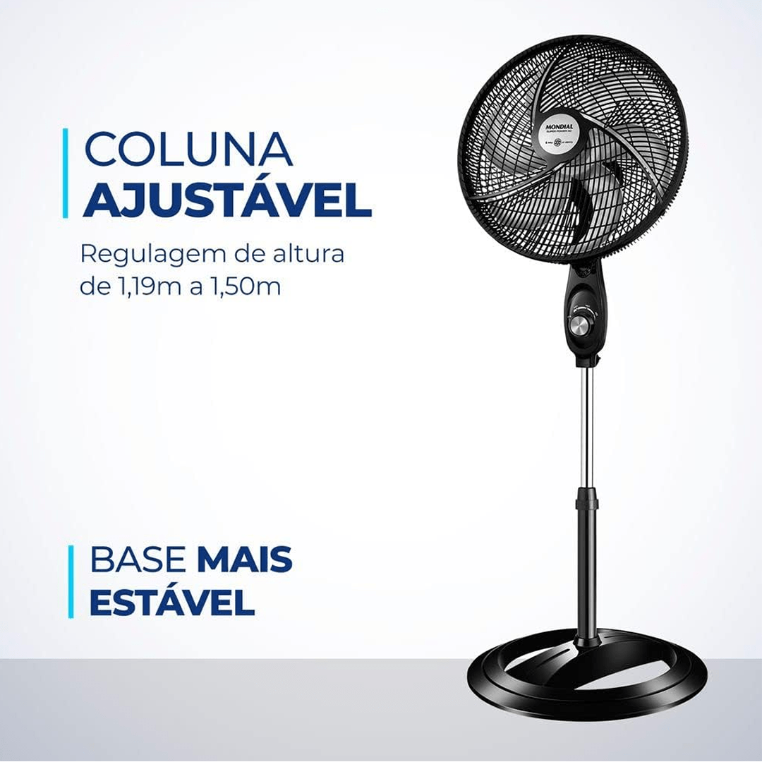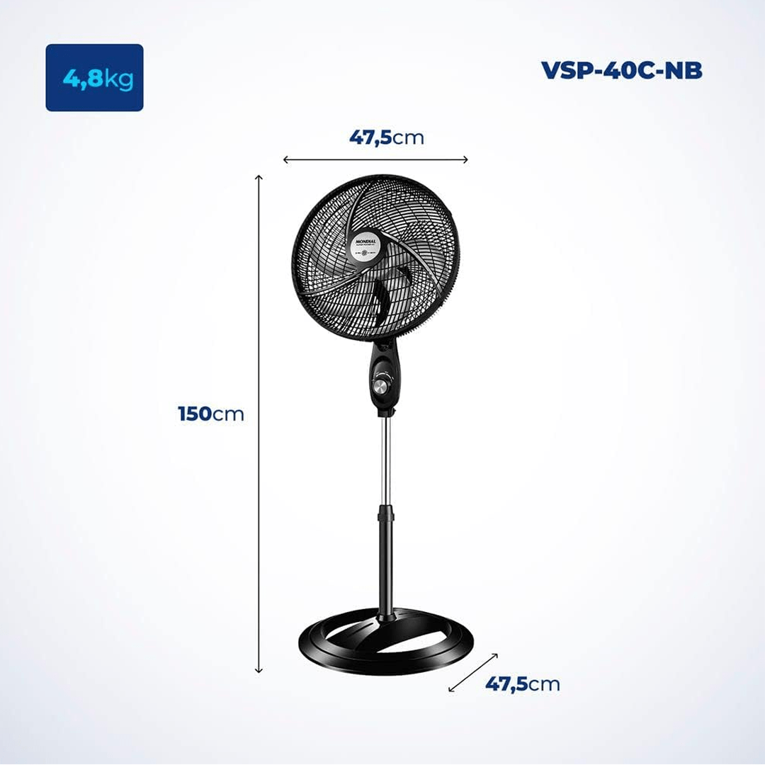 O ventilador de coluna Super Power VSP-40C-NB possui 40 cm de diâmetro e hélice com 6 pás, garantindo um ambiente mais refrescante e agradável. Com coluna ajustável entre 1,19 e 1,50 metros, o aparelho permite ajuste da altura do vento. O sistema de ventilação da Mondial apresenta baixo nível de ruído, assegurando o silêncio necessário para uma excelente noite de sono. Saiba mais sobre o VSP-40C-NB da Mondial: