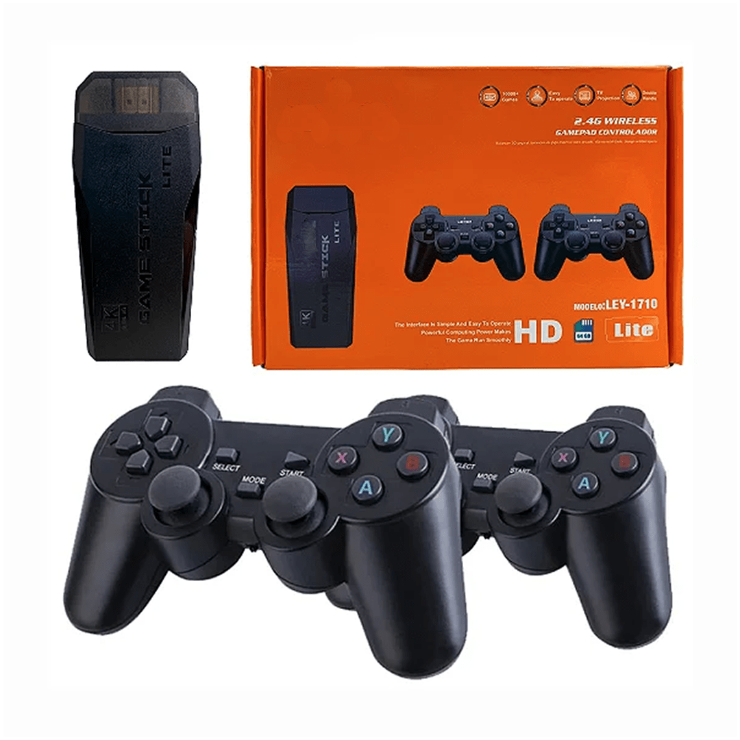 2、2.4g Controlador Dual wireless Gamepad:Este Console de videogame tem dois gamepads sem fio, simples e conveniente, você pode experimentar a diversão do jogo com seus amigos, parceiros e crianças